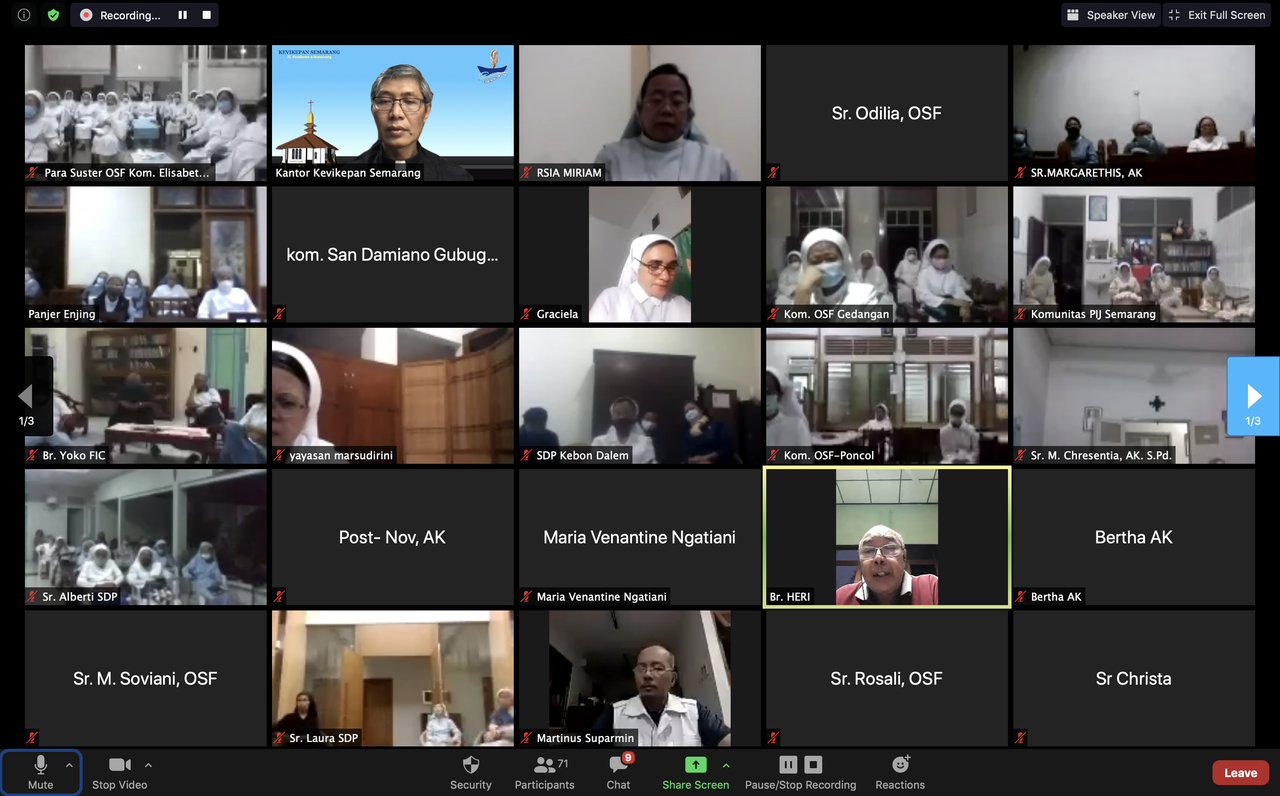 Di awal perjumpaan, Rm Vikep Semarang, Rm Fx. Sugiyana Pr menyampaikan tugas dan tanggung jawab Vikep di wilayah kevikepannya. Vikep menjadi perwakilan kehadiran Uskup di wilayah kevikepan, menjadi ordinaris wilayah dan menjadi promosi dan pengembang pastoral. Sebagai ordinaris wilayah, vikep memiliki tanggung jawab untuk mengadakan kunjungan kanonis ke komunitas-komunitas religius dan lembaga-lembaga gereja di wilayah kevikepannya. Perjumpaan via zoom ini menjadi bagian dari kunjungan kanonis di masa pandemi. Dalam sharingnya para Suster dan Bruder mengakui bahwa pandemi memberi dampak yang sangat terasa pada komunitas, terutama pada karya-karya mereka. Masalah kesehatan, finansial dan dinamika karyanya sangat terasa. Namun kondisi itu tidak mengurangi rasa belarasa mereka. Kepedulian dan solidaritas pada yang membutuhkan tetap menjadi prioritas pelayanan mereka.