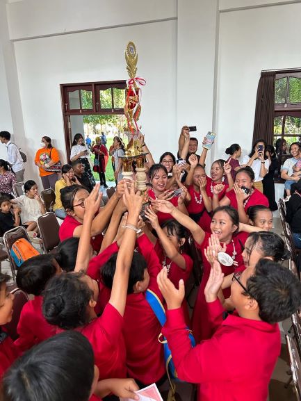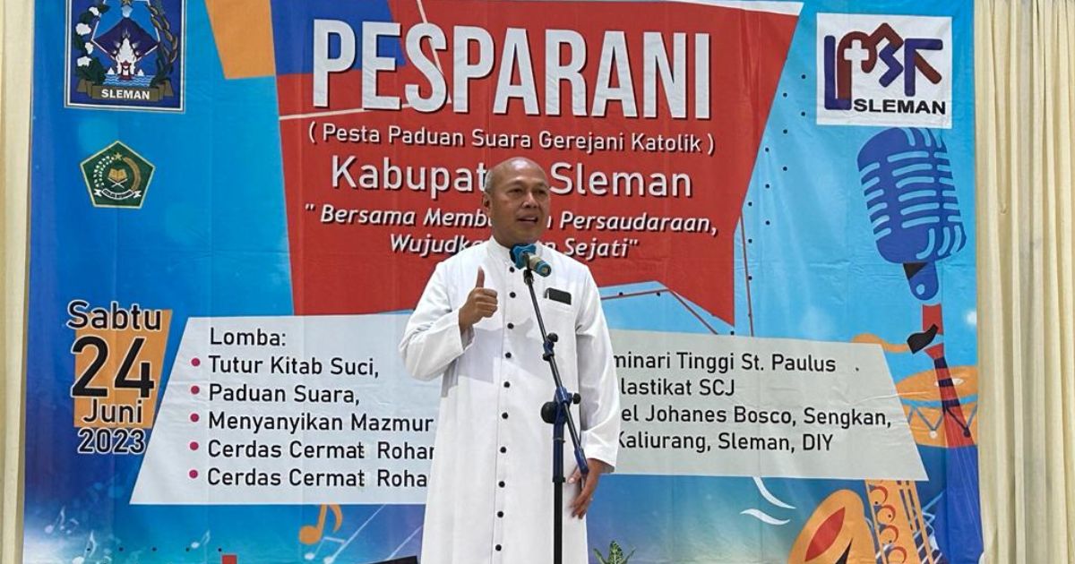 SLEMAN, – Pesta Paduan Suara Gerejani Katolik (Pesparani) I Tahun 2023 Kabupaten Sleman berlangsung meriah dan berjalan dengan sukses. Pesparani yang dipusatkan di Seminari Santo Paulus Kentungan, Sabtu (24/6/2023), diikuti sekitar 1.400 peserta, anak-anak, remaja dan dewasa. Paroki Keluarga Kudus Banteng, menjadi juara umum dan memboyong Piala Bupati Sleman Kustini Sri Purnomo.