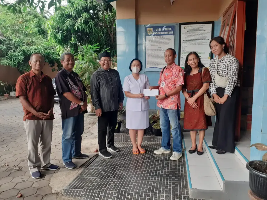 Peringatan HOMS dilanjutkan dengan berbagi kasih berupa sembako ke Panti Asuhan Bhakti Luhur yang beralamat di Desa Sumber, Kalitirto, Berbah, Sleman. Berbagi kasih bingkisan sembako ini diterimakan oleh Suster Ria, ALMA mewakili pimpinan panti asuhan.