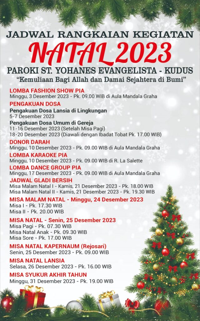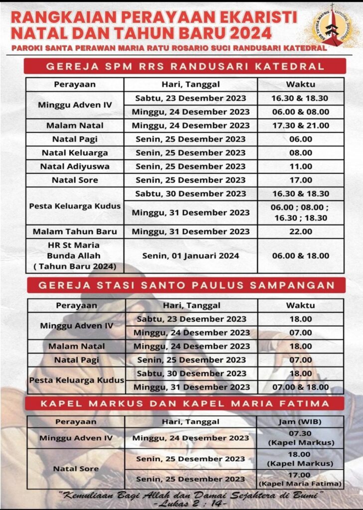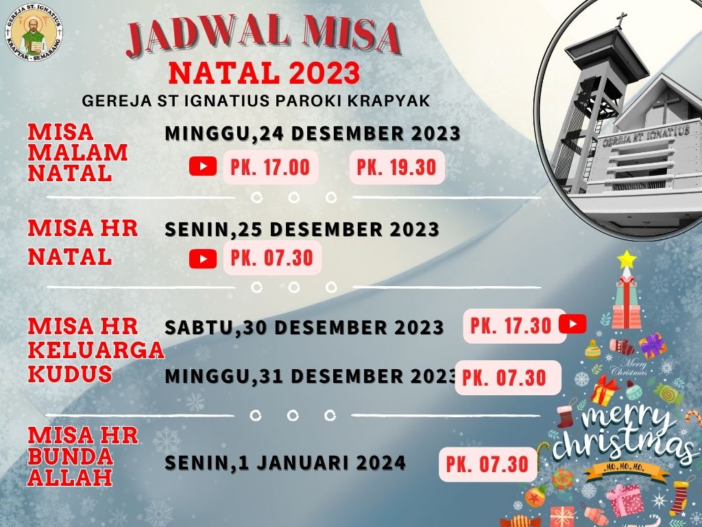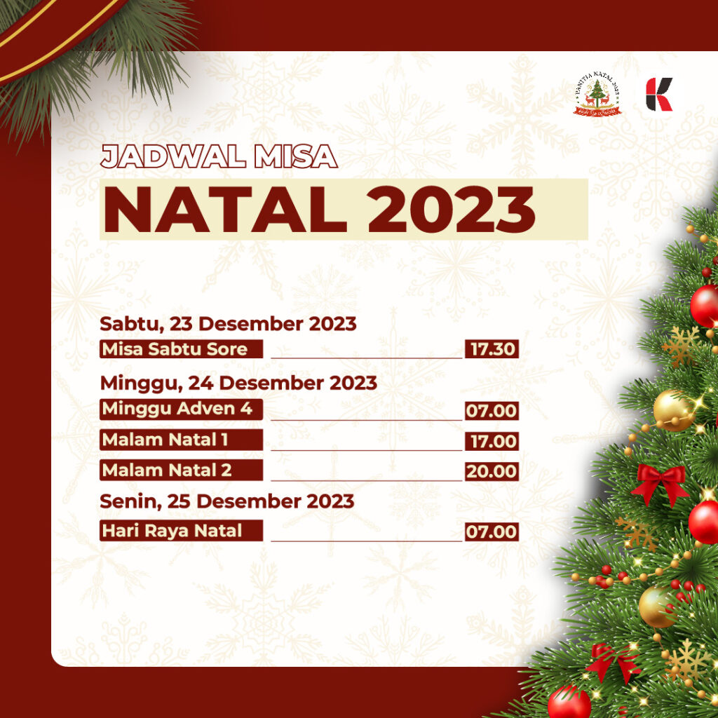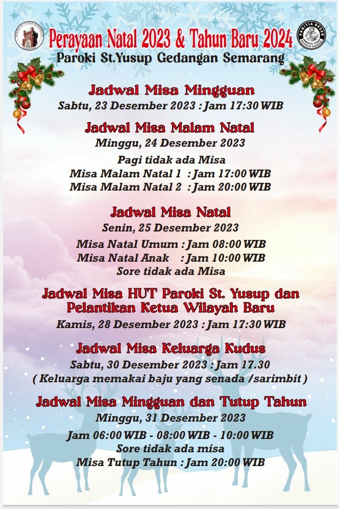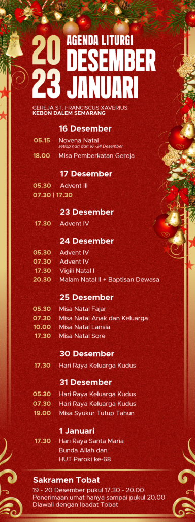 Berikut jadwal misa Natal 2023 dan Tahun Baru 2024 Gereja Katolik di Kevikepan Semarang:
