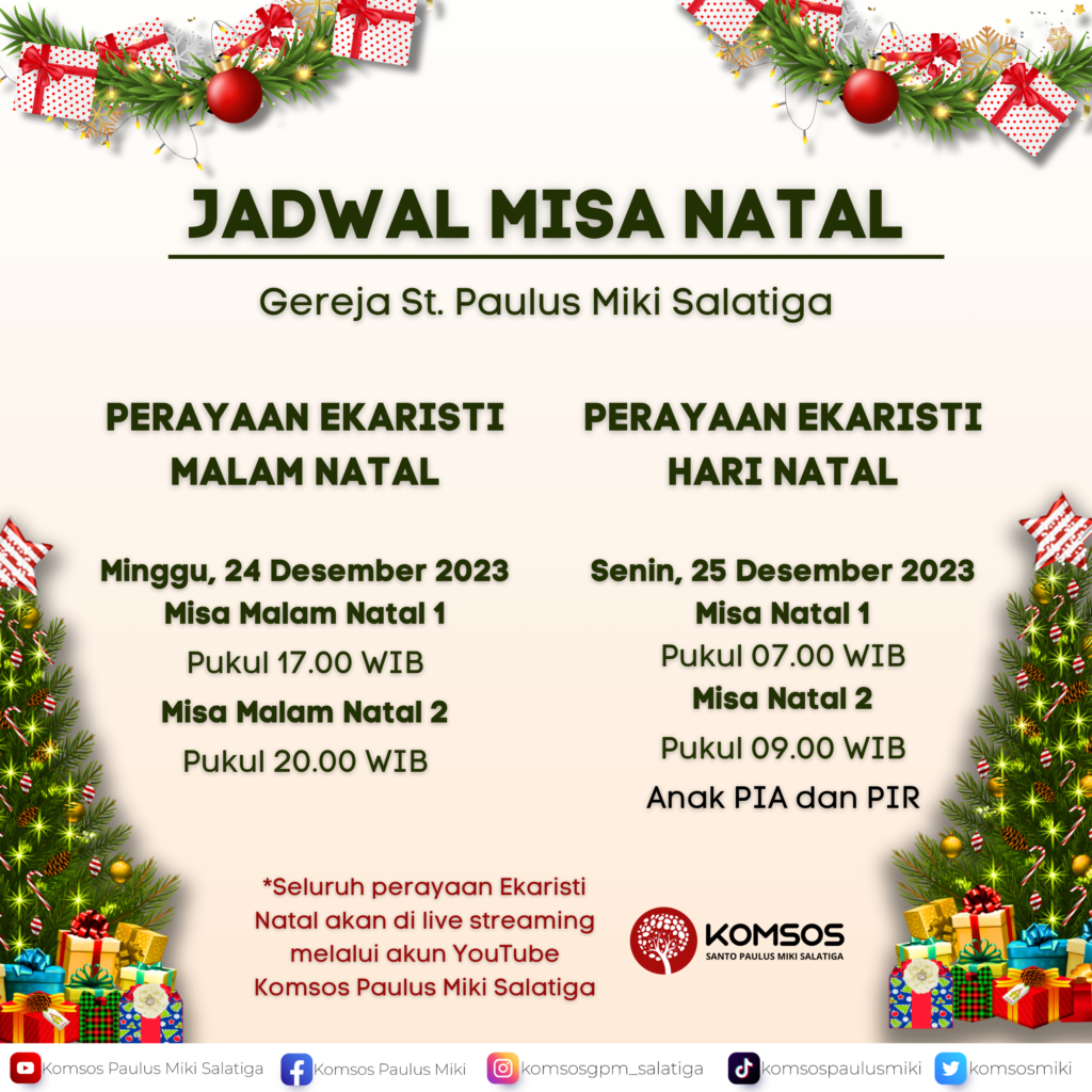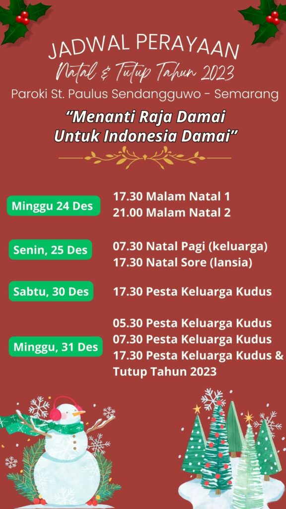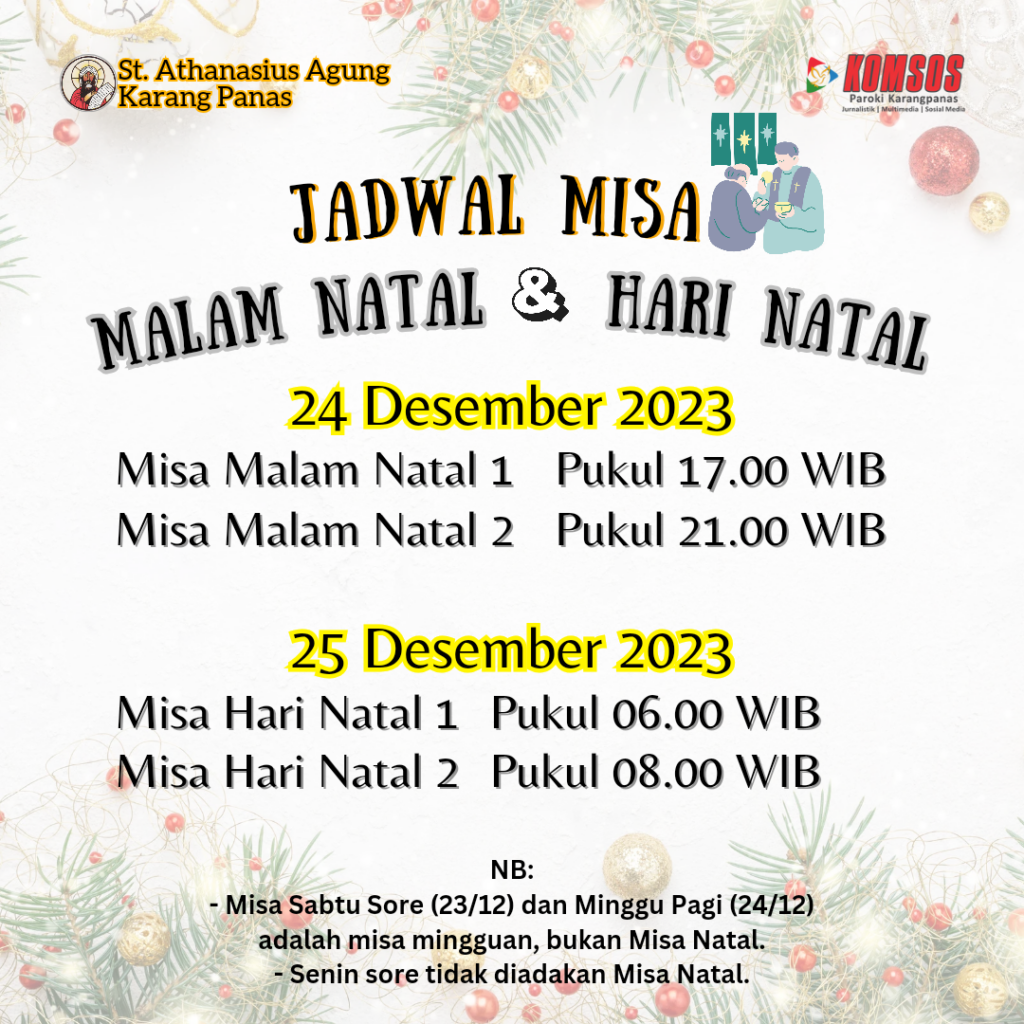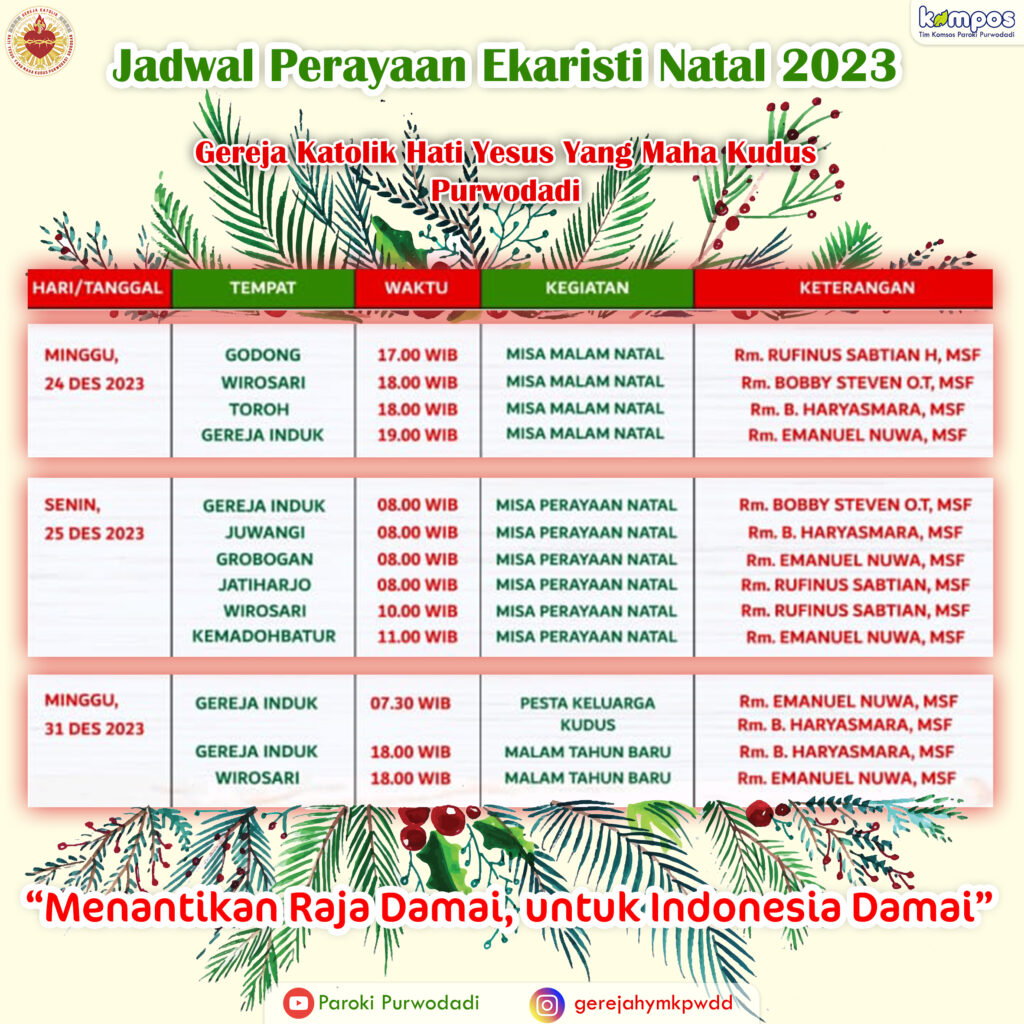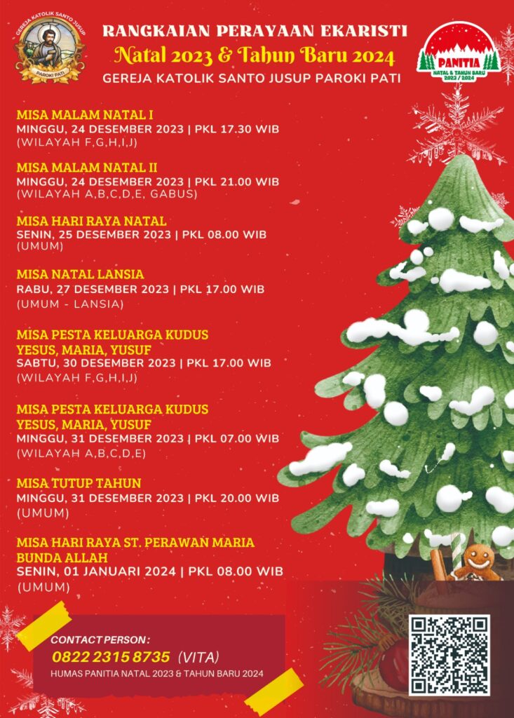 Berikut jadwal misa Natal 2023 dan Tahun Baru 2024 Gereja Katolik di Kevikepan Semarang: