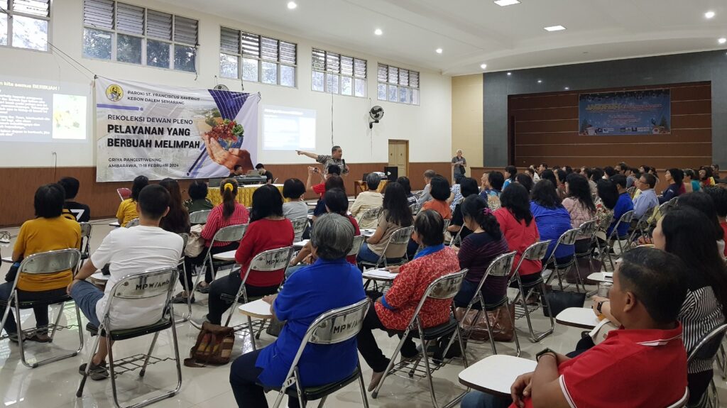 Kebon Dalem – Pada Sabtu-Minggu, 17-18 Februari 2024 Paroki Santo Franciscus Xaverius Kebon Dalem mengadakan penyegaran bagi 98 anggota pleno Dewan Pastoral Paroki (DPP). Kegiatan penyegaran ini diadakan di Rumah Retret Pangesti Wening, Ambarawa dengan tema “Pelayanan yang Berbuah Melimpah”.