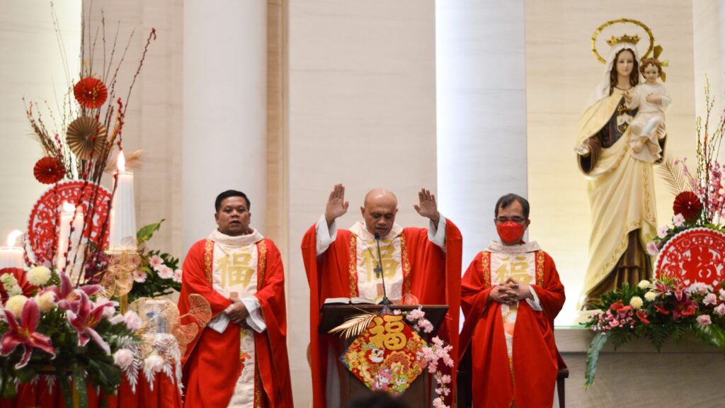 Kebon Dalem – Pada hari Senin, 19 Februari 2024 sore umat Paroki Santo Franciscus Xaverius Kebon Dalem merayakan Misa Imlek. Nuansa merah menghiasi komplek Gereja. Ornamen-ornamen bernuansa Mandarin mendonimasi dekorasi mulai dari jembatan depan, teras, sampai dalam gereja. Lampion-lampion bergantungan menambah maraknya suasana Imlek. Misa Imlek ini dipimpin oleh Romo Yohanes Dwi Harsanto, Pr., Vikep Kategorial, sebagai Selebran Utama. Romo Yohanes Slamet Witokaryono, Pr. dan Romo Estaphanus Gerardus Willem Pau, Pr. sebagai Konselebran.