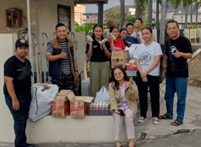 Kabid Pelayanan Kemasyarakatan, Ariska (kedua kiri), bersama OMK Atmodirono bersukacita saat bertugas membagi takjil (dok. Komsos Atmo)