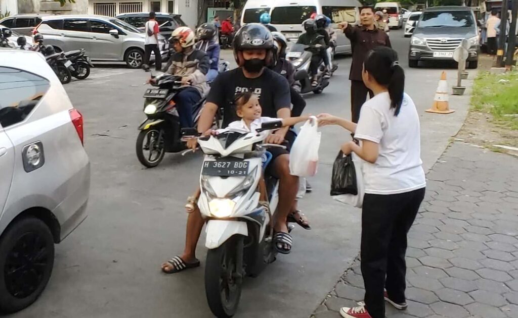 Atmodirono – Banyak cara untuk memupuk persaudaraan antar umat beragama. Pada bulan Ramadhan ini menjadi salah satu kesempatan untuk mewujudkannya. Itulah yang dilakukan oleh Paroki Keluarga Kudus Atmodirono Semarang. Kamis (19/04/24) sore, Bidang Pelayanan Kemasyarakatan bekerja sama dengan Ibu-Ibu Paroki dan UMKM Paroki menggelar pembagian takjil gratis di tepi jalan Atmodirono, tepatnya di depan gereja. Pembagian takjil yang dibantu oleh OMK Paroki ini diperuntukkan bagi umat muslim yang melintasi jalan tersebut.