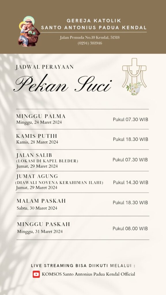 Jadwal Pekan Suci 2024 di Kevikepan Semarang