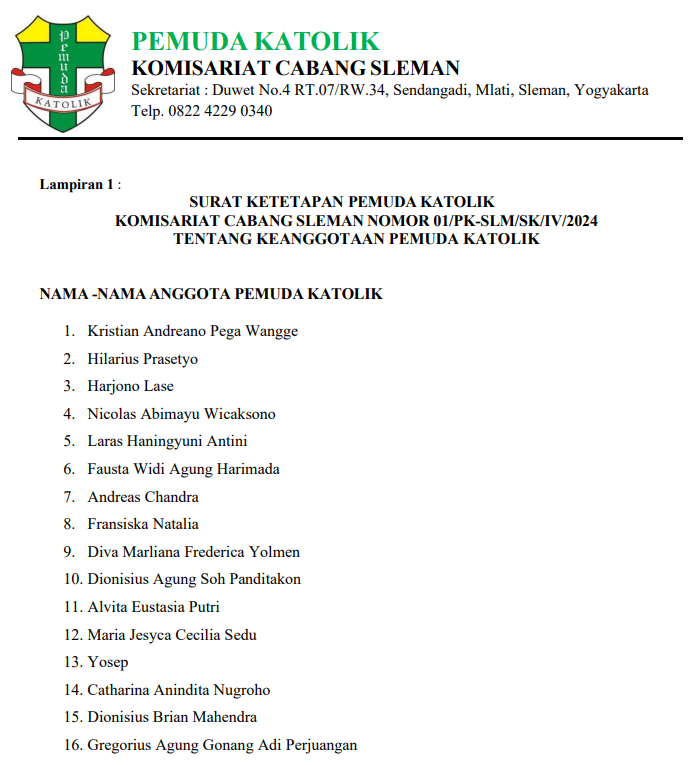 Nama – Nama Anggota Pemuda Katolik Komisariat Cabang Sleman :