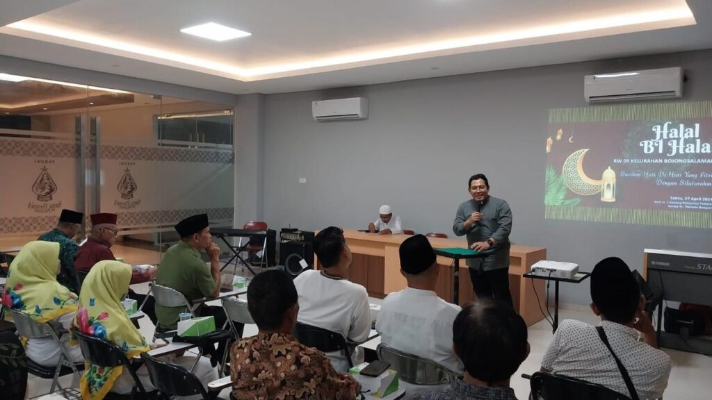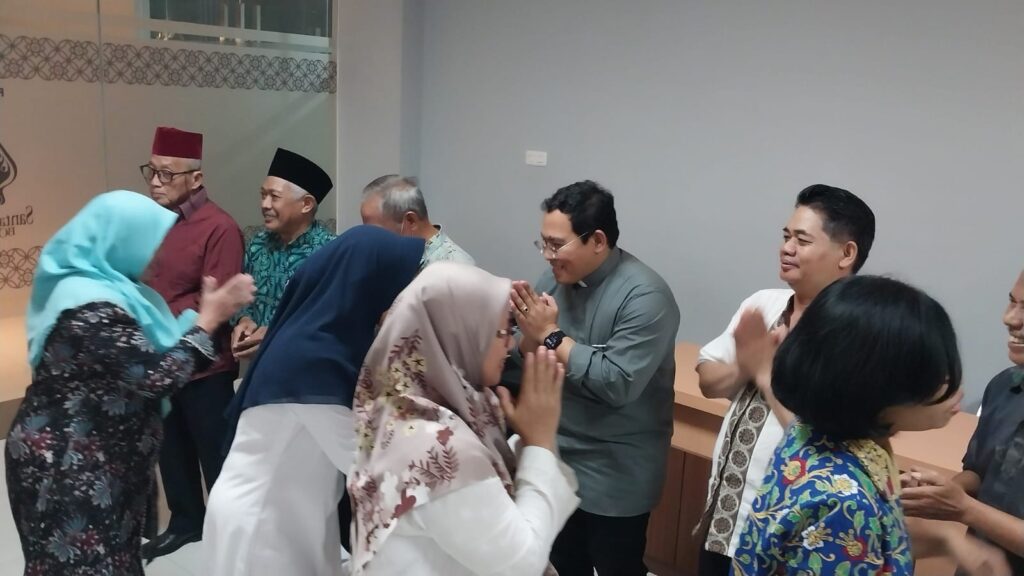 Bongsari – Halal bi halal di kompleks gereja? Itulah yang terjadi di Gereja Santa Theresia Bongsari. Hari itu, Sabtu (27/4/24), Pengurus RW 09 Kelurahan Bojongsalaman Semarang ‘nganyari’ Gedung Pelayanan Pastoral Gereja Bongsari untuk acara halal bi halal. Dikatakan nganyari, karena gedung pastoral ini memang belum diresmikan.