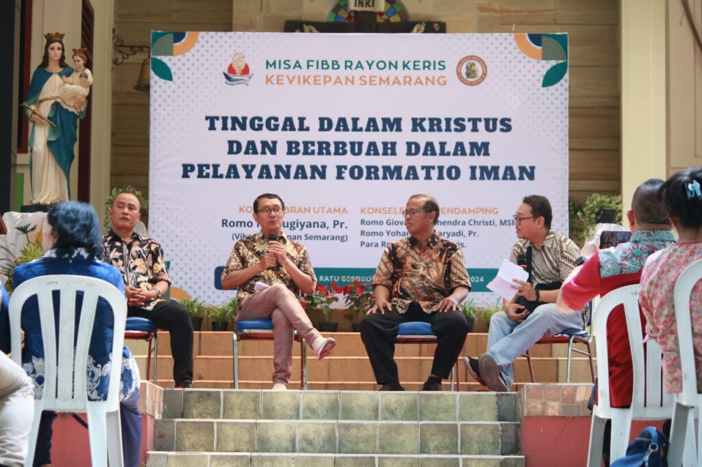 Semarang 23/05/2024. Pada tanggal 23 Mei 2024 bertepatan dengan Hari Libur Waisak, bertempat di Goa Gua Bunda Maria Ratu Besokor dilangsungkan Perayaan Ekaristi FIBB (Formasio Iman Berjenjang dan Berkelanjutan) teruntuk Rayon Keris Kevikepan Semarang. Perayaan Ekaristi mengambil tema yang sama dengan Misa FIBB sebelumnya yaitu ”Semakin Tinggal dalam Kristus dan Berbuah dalam Pelayanan Formasio Iman.”