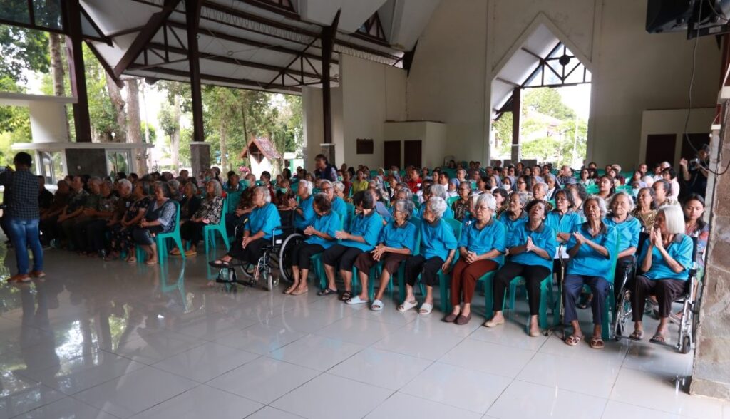 Ambarawa – Hari Lanjut Usia Nasional (HLUN) yang diperingati setiap tanggal 29 Mei menjadi salah satu momentum bagi para Oma Opa atau klien di empat unit Panti Wredha Yayasan Sosial Soegijapranata (YSS) untuk berjumpa, berkumpul dan bersukacita. Pada hari Rabu, 29 Mei 2024, sejumlah 150 lansia hadir memenuhi Gedung Serbaguna Gua Maria Kerep Ambarawa, tepat di Hari Lanjut Usia Nasional.