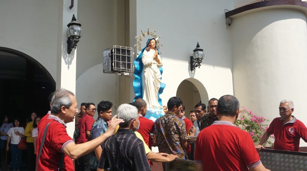 Atmodirono – Menjelang perayaan Tujuh Dasawarsa atau 70 tahun Gua Maria Kerep Ambawara pada 15 Agustus 2024, replika patung Maria Assumpta dikelilingkan dan singgah di 8 paroki di Kevikepan Semarang. Replika setinggi 2 meter itu singgah selama 1 minggu di masing-masing paroki. Di gereja paroki itu, umat bisa melaksanakan ibadat devosi, baik pribadi maupun kelompok.