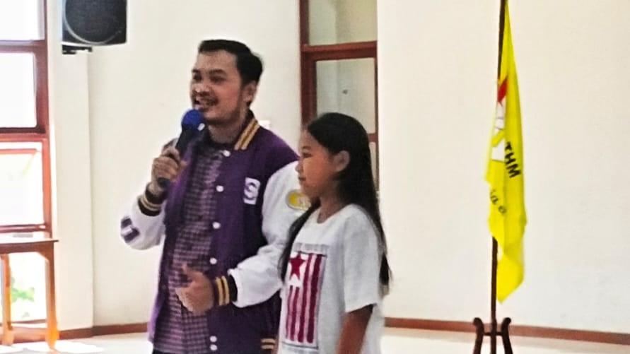 Romo Pras saat berbincang dengan salah satu peserta workshop