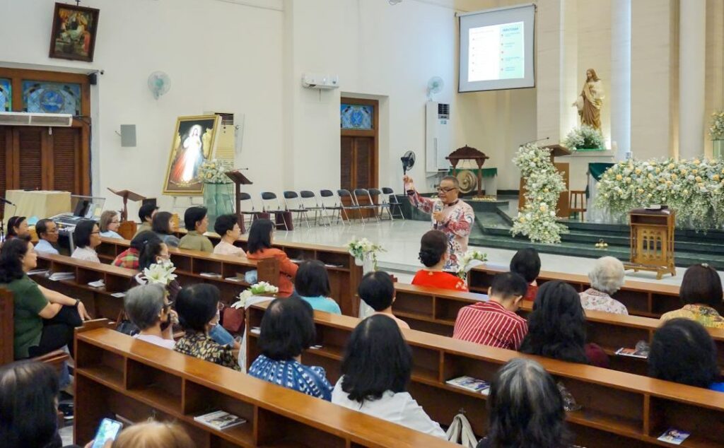 Kebon Dalem – Tim Pelayanan Adorasi dan Devosi Paroki Santo Franciscus Xaverius Kebon Dalem Semarang mengadakan Sarasehan Adorasi yang bertema “Kristus Sang Roti Hidup” pada tanggal 30 Agustus 2024. Sarasehan diawali dengan kata sambutan dari Kepala Bidang Liturgi, dan menyanyikan lagu Santo Fransiskus Xaverius sebagai pembuka.