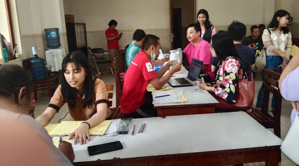 Usai Misa Minggu pagi, umat berbondong-bondong mendaftarkan diri untuk berdonor darah di ruang Maria Paroki Atmodirono.(dok Elwin)