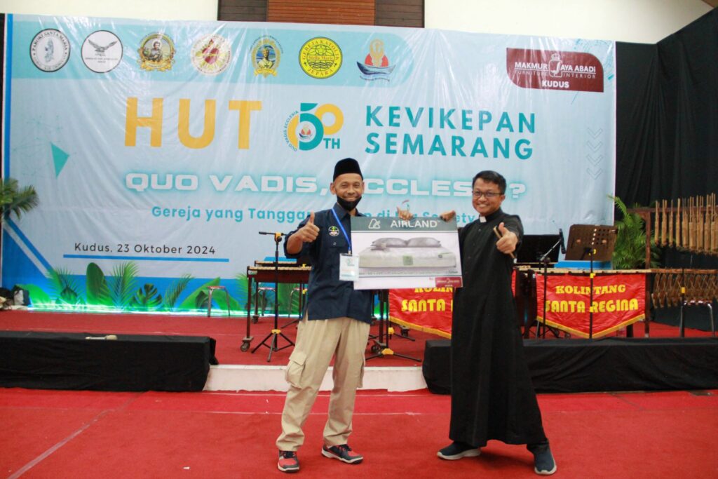 Kudus – Rangkaian Hari Ulang Tahun (HUT) Kevikepan Semarang yang ke-58 tahun ditutup dengan Perayaan Ekaristi yang diselenggarakan pada hari Rabu, 23 Oktober 2024 di Gereja Santo Yohanes Evangelista Kudus. Misa Syukur ini dihadiri oleh sekitar 550 umat se-Kevikepan Semarang. Sebelumnya telah dilangsungkan Wawanhati PGPM dan DPPH Paroki bersama Romo F.X. Sugiyana, Pr., serta Sarasehan, Tirakatan dan Doa Lintas Agama.