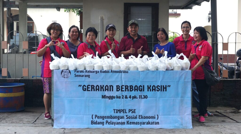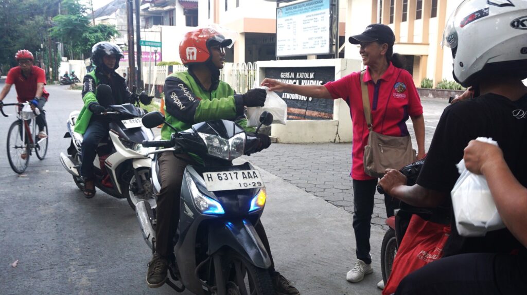 Atmodirono – Bulan puasa ramadhan bagi umat Muslim dan masa prapaskah bagi umat Katolik telah menggerakkan UMKM Paroki Keluarga Kudus Atmodirono Semarang untuk berbagi kasih dan mewujudkan toleransi. Kamis (6/3/25) sore, bertempat di depan kompleks gereja, mereka menggelar Gerakan Berbagi Kasih dengan berbagi takjil gratis kepada setiap pengguna jalan yang melintas, khususnya para driver ojek online (ojol).