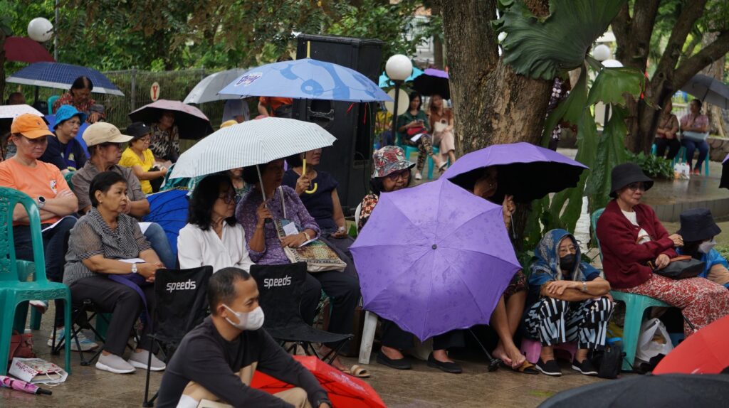 Demi melindungi diri dari gerimis, beberapa membuka payung. Ada pula yang mengenakan jas hujan yang memang sudah mereka siapkan. Lainnya? Ada yang memakai topi, koran, jaket, namun ada pula yang membiarkan diri dibasahi ‘rahmat’ air gerimis.