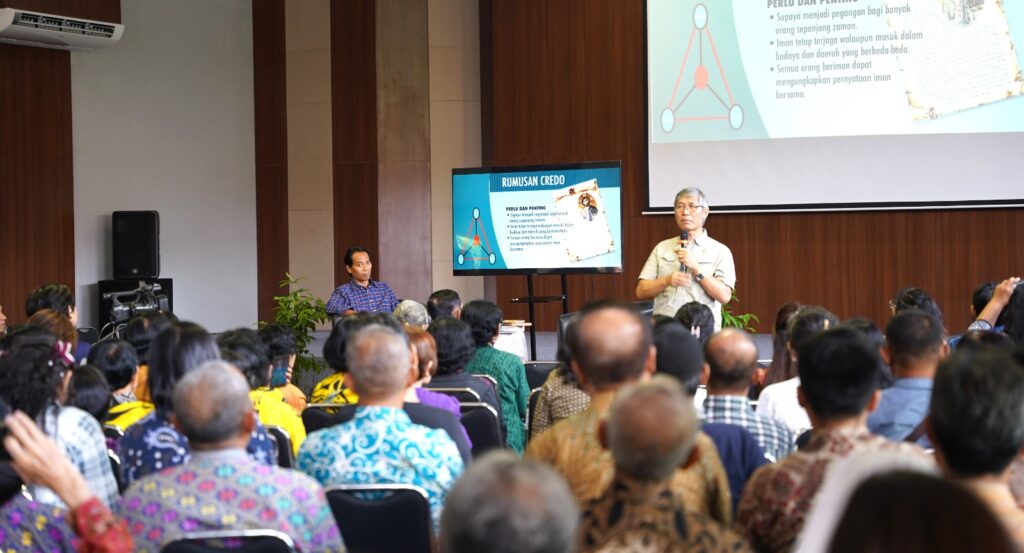 “Kedua, dari segi hukum, Credo merupakan bagian dari liturgi resmi yang dinyatakan dalam Sakramen Baptis sebagai bentuk pernyataan iman. Doa ini juga menjadi persyaratan untuk menerima 6 Sakramen lain dan wajib dipegang dan dinyatakan secara utuh oleh umat Katolik. Dan ketiga, dari pastoral, Credo penting untuk dipelajari agar umat terbantu untuk dapat memahami identitas dan panggilan mereka sebagai orang beriman melalui evangelisasi dan katekese sehingga dengan pemahaman yang baik, umat dapat lebih siap untuk mewartakan Sabda Kristus di tengah masyarakat,” papar Romo Sugiyana di hadapan 230 peserta.