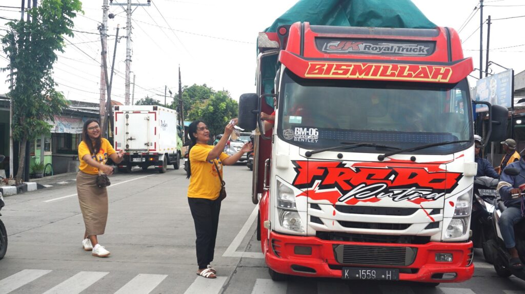 Dengan mengenakan kaos warna kuning bertuliskan Creative & Caring School, mereka antusias membagikan takjil kepada umat muslim yang melintas di depan gerbang sekolah dan sebaliknya. Penerimanya tak hanya driver ojol, orang tua dan anak-anak pun turut kebagian takjil. Bahkan seorang sopir truk sengaja menghentikan truknya di tengah jalan supaya memperoleh takjil. Dua orang guru pun tanggap, lalu mengulurkan 2 paket takjil bagi sopir dan kernetnya.