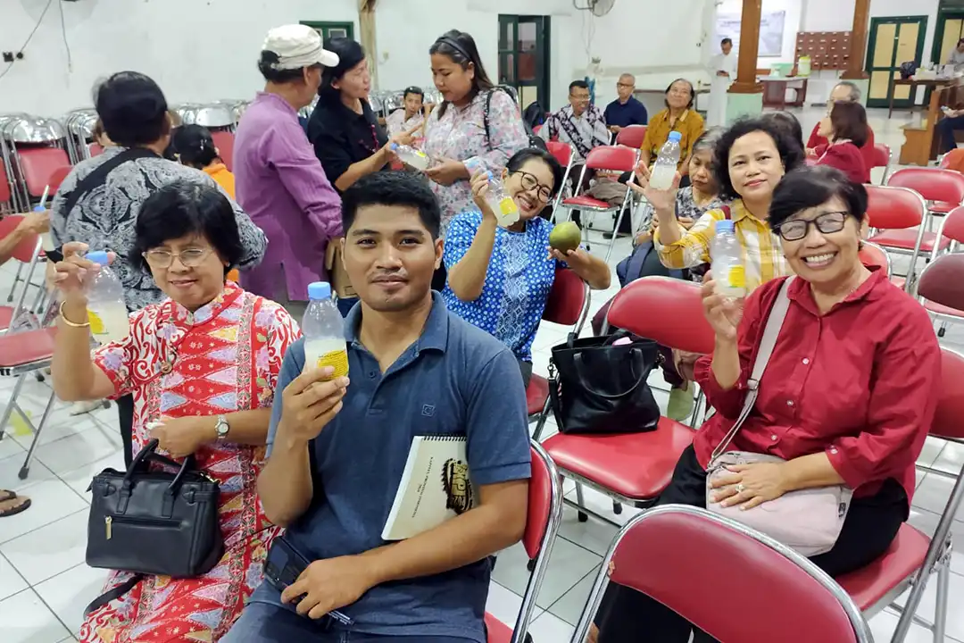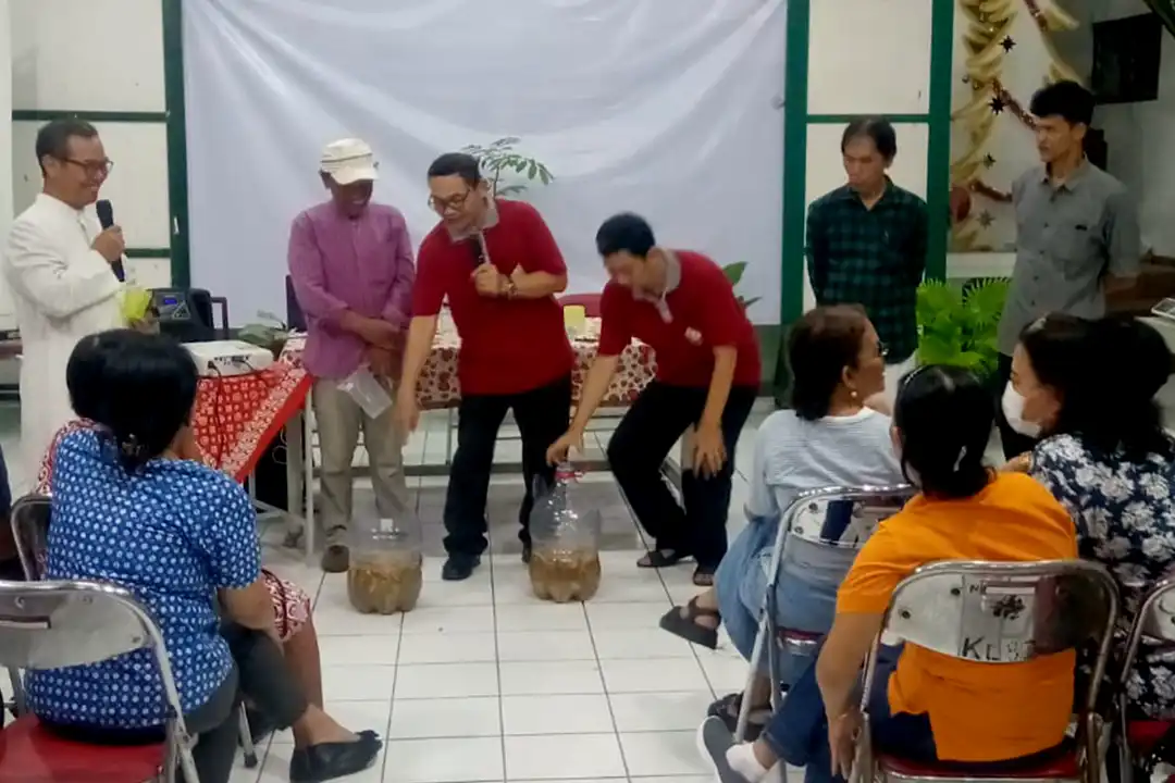 Menutup acara, Bapak Bambang dan Bapak Totok selaku penanggung jawab acara membagikan biokatalit dan mengajak peserta untuk merumuskan kegiatan paroki hijau yang akan diimplementasikan di Paroki Kidul Loji.