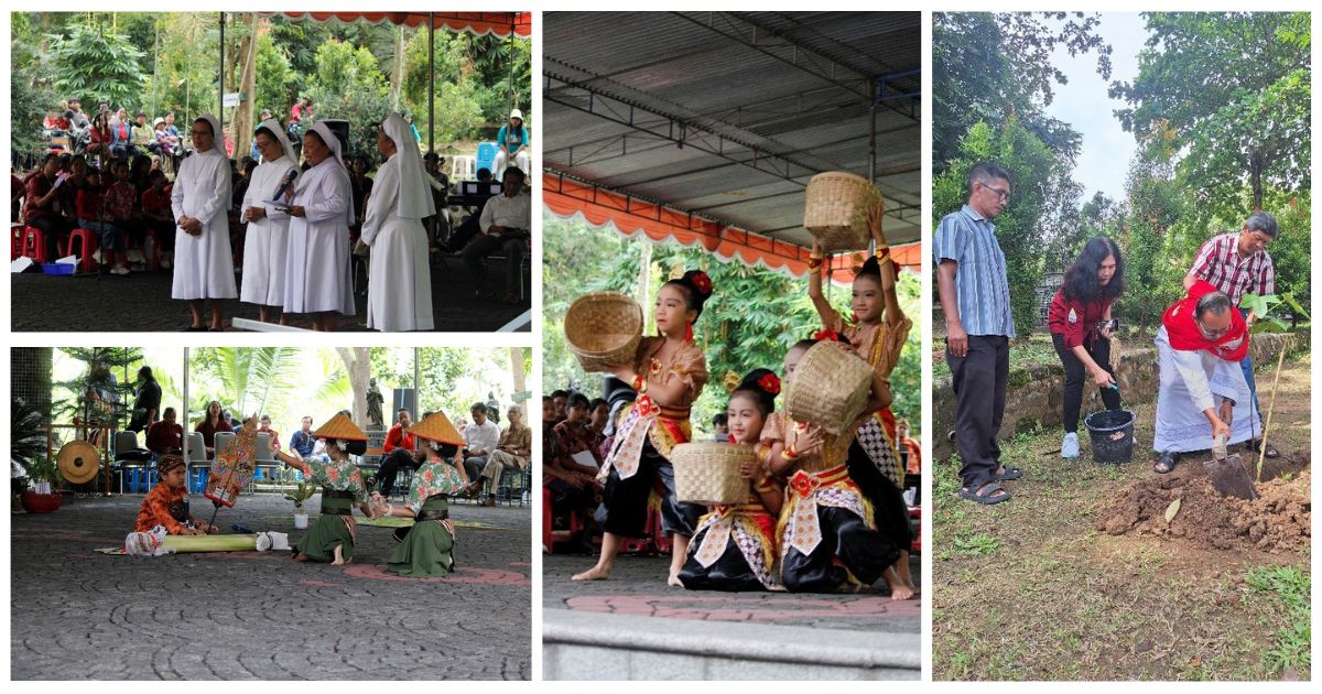 Setelah Perayaan Ekaristi usai Rm AR Yudono Suwondo,Pr, Rm A. Hendri Atmaka Pr dan Rm Andika Bayangkara, Pr, secara bersama menanam bibit pohon pocung di halaman taman doa Romo Prenthaler.(@ds)