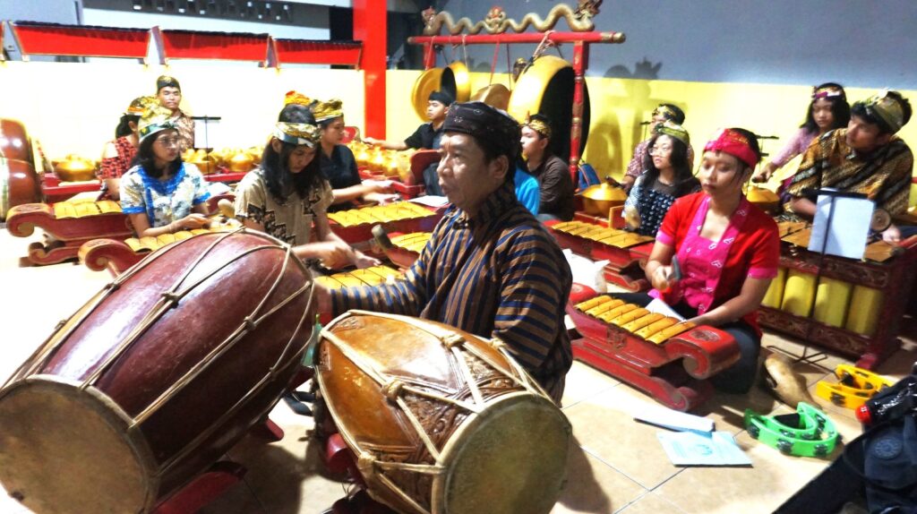 Gema gamelan yang ditabuh OMK Atmodirono mengiringi prosesi petugas liturgi dan imam menuju altar yang terletak di sisi kiri gua. Di tengah alunan lagu pembuka, umat berdiri menyambut prosesi dengan sikap hormat. Malam itu, suasana menjadi begitu sakral, menyatukan iman dan budaya di bawah langit malam yang bersahabat.