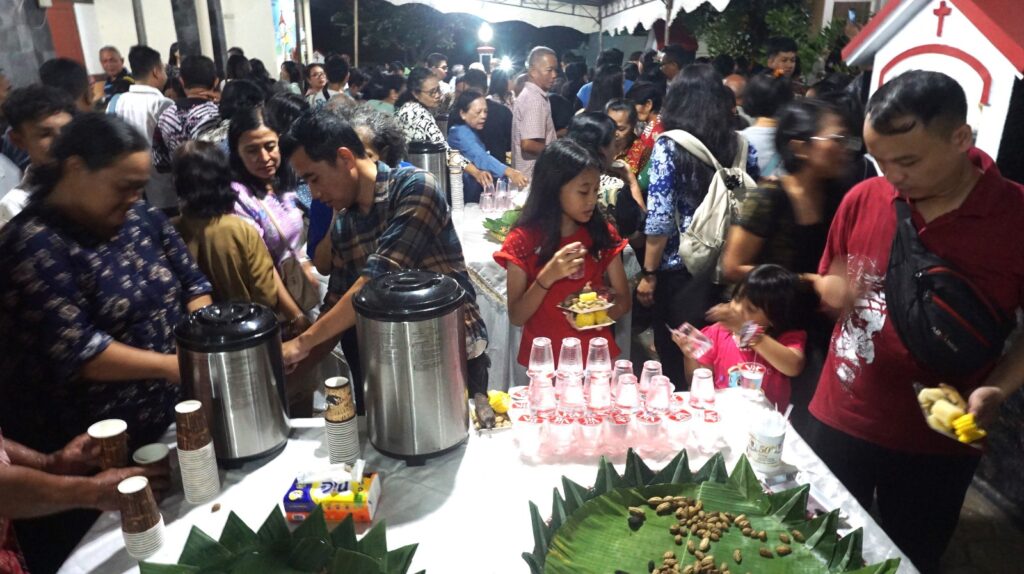 Usai misa, umat diajak menikmati pesta syukur dengan sajian khas Jawa seperti bubur sura, kacang dan pisang godog, pohong, kimpul, kentang ireng, ditemani teh panas dan wedang jahe. Semua dinikmati bersama dengan iringan musik gamelan oleh OMK yang terus mengalun hingga acara usai.
