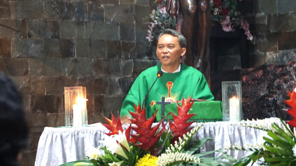 Romo Yusup “Nano” Sunarno MSF, Pastor Paroki Atmodirono, memimpin Perayaan Ekaristi. Dalam homili, Romo Nano mengulas makna Satu Suro dari perspektif sejarah Jawa. Ia menjelaskan bagaimana Sultan Agung merancang penanggalan Jawa dengan menggabungkan unsur tahun Saka (Hindu) dan Hijriah (Islam) sebagai bentuk upaya mempersatukan masyarakat dari berbagai latar belakang.