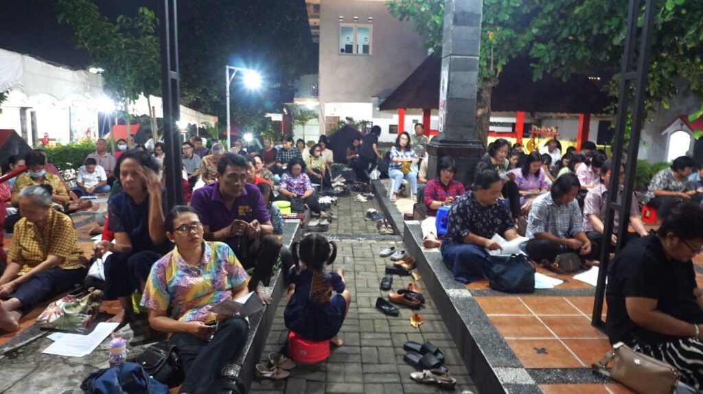 Atmodirono – Suasana khidmat dan penuh kekhusyukan menyelimuti pelataran Gua Maria Talanging Sih, Tegalsari, Paroki Keluarga Kudus Atmodirono, Kamis malam (26/6). Dalam semarak peringatan Malam 1 Sura, hampir 400 umat tumpah ruah mengikuti Perayaan Ekaristi yang dibalut dalam nuansa budaya Jawa dan iman Katolik.