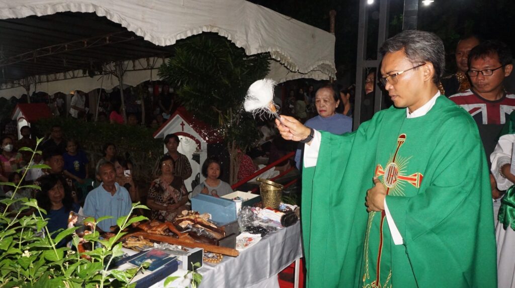 Acara Malam 1 Sura di Gua Maria Talanging Sih memang telah menjadi tradisi tahunan. Namun tahun ini terasa lebih istimewa karena bertepatan dengan malam Jumat Kliwon, yang dalam budaya Jawa dipercaya sebagai malam yang penuh makna spiritual. Maka di akhir Ekaristi, diadakan pemberkatan benda-benda rohani oleh Romo Nano, seperti salib, rosario, patung santo-santa.