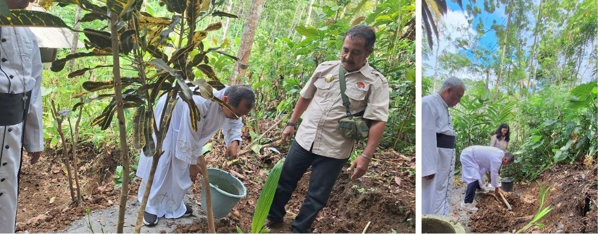 Dalam Homilinya Rm. Agus Widodo,Pr menyampaikan bumi adalah rumah untuk mencukupi kebutuhan manusia. Romo mengajak refleksi bahwa Allah mengaruniakan Anaknya yang tunggal dan bumi untuk manusia. Anaknya yang menebus dosa manusia dan Bumi untuk mencukupi manusia. Sehingga bumi perlu dirawat supaya dapat dinikmati semua makhluk dan terutama untuk anak cucu kita. Setelah misa berakhir dilaksanakan simbolis penanaman 3 bibit Pohon Kelapa serat merah di pekarangan bawah Kapel Gua Maria Lawangsih.