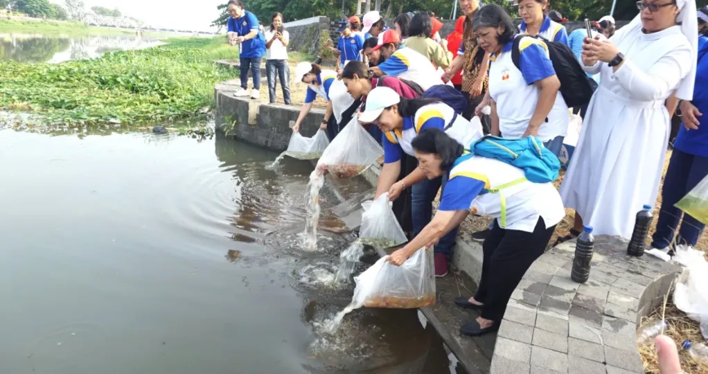 “Semoga kegiatan ini bisa menjadi persembahan kita bersama untuk alam, anugerah Allah yang sungguh-sungguh kita butuhkan. Air sungai ini kelihatan tenang, namun harapannya airnya masih cukup sehat. Sehingga ikan yang pagi ini kita taburkan bisa tumbuh dan sehat. Gerakan ini sekaligus juga menunjukkan bahwa kepedulian terhadap lingkungan bisa menjadi sarana membangun kerukunan lintas iman,” ujarnya.