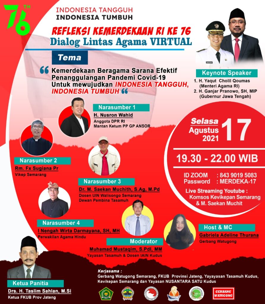 Dialog Lintas Agama Virtual dengan tema “Kemerdekaan Beragama Sarana Efektif Penanggulangan Pandemi Covid-19 Untuk Mewujudkan Indonesia Tangguh, Indonesia Tumbuh” diselenggarakan Selasa, 17 Agustus 2021 Pukul 19.30-22.00 WIB.Hadir sebagai Keynote Speaker H. Ganjar Pranowo, SH, MIP (Gubernur Jawa Tengah). Sambutan pembukaan acara oleh Drs. H. Taslim Sahlan, M.Si (Ketua FKUB Provinsi Jawa Tengah). Acara kemudian diperdalam […]
