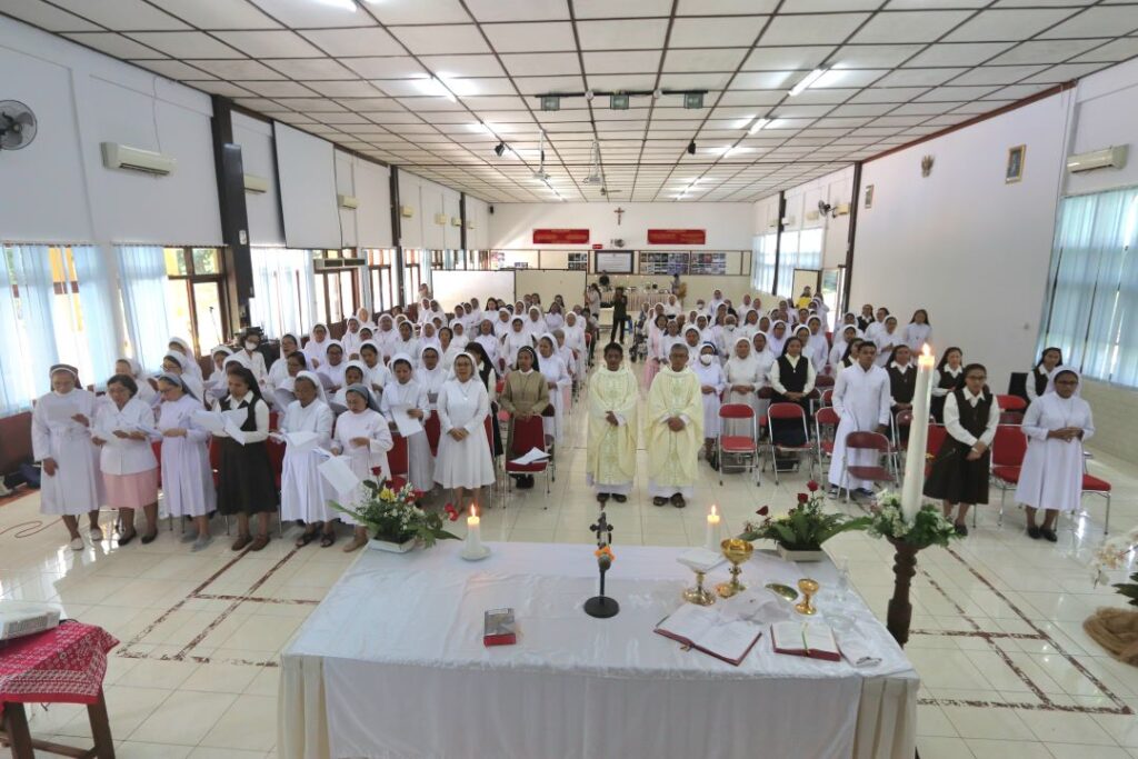 Ikatan Karya dan Hidup Rohani Antar Religius (IKHRAR) Kevikepan Semarang mengadakan Paskahan besama dan wawanhati bersama Romo J.B. Rudy Hardono, Pr., Vkikaris Episkopalis Semarang di Aula SMA Don Bosko Semarang, pada hari Minggu, 4 Mei 2025.
