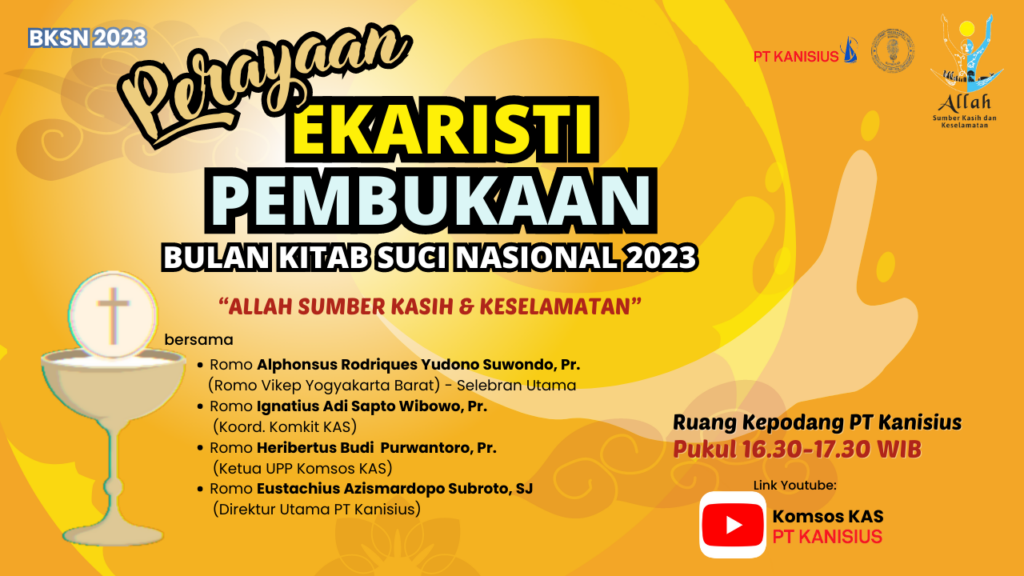 Saudara-saudari, Komisi Kitab Suci Keuskupan Agung Semarang Bekerjasama Dengan Pt Kanisius menyelenggarakan berbagai kegiatan dalam rangka menyemarakkan Bulan Kitab Suci Nasional dengan tema “Allah Sumber Kasih & Keselamatan”.