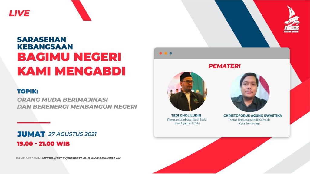 Bulan Agustus merupakan bulan Ajaran Sosial Gereja (ASG) dan biasa disebut sebagai Bulan Kebangsaan. Maka PK3 Kevikepan Semarang bersama Sekretariat Kevikepan menyelenggarakan sarasehan yang mengajak umat mengembangkan semangat kebangsaan (nasionalisme) dan ajakan kepedulian untuk terlibat dan ikut berjuang mengatasi wabah virus Covid-19 pada setiap Jumat, Pukul 19.00-21.00. Pada Jumat, 27 Agustus 2021, Pukul 19.00-21.00 diselenggarakan […]