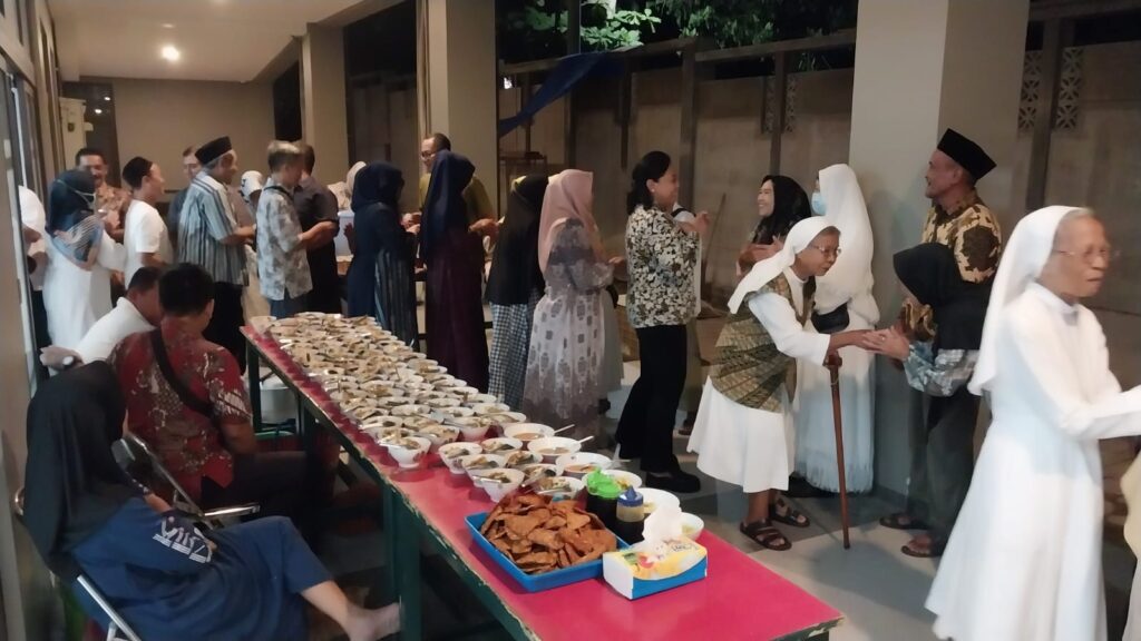 Halal bi halal di kompleks gereja? Itulah yang terjadi di Gereja Santa Theresia Bongsari. Hari itu, Sabtu (27/4/24), Pengurus RW 09 Kelurahan Bojongsalaman Semarang ‘nganyari’ Gedung Pelayanan Pastoral Gereja Bongsari untuk acara halal bi halal.