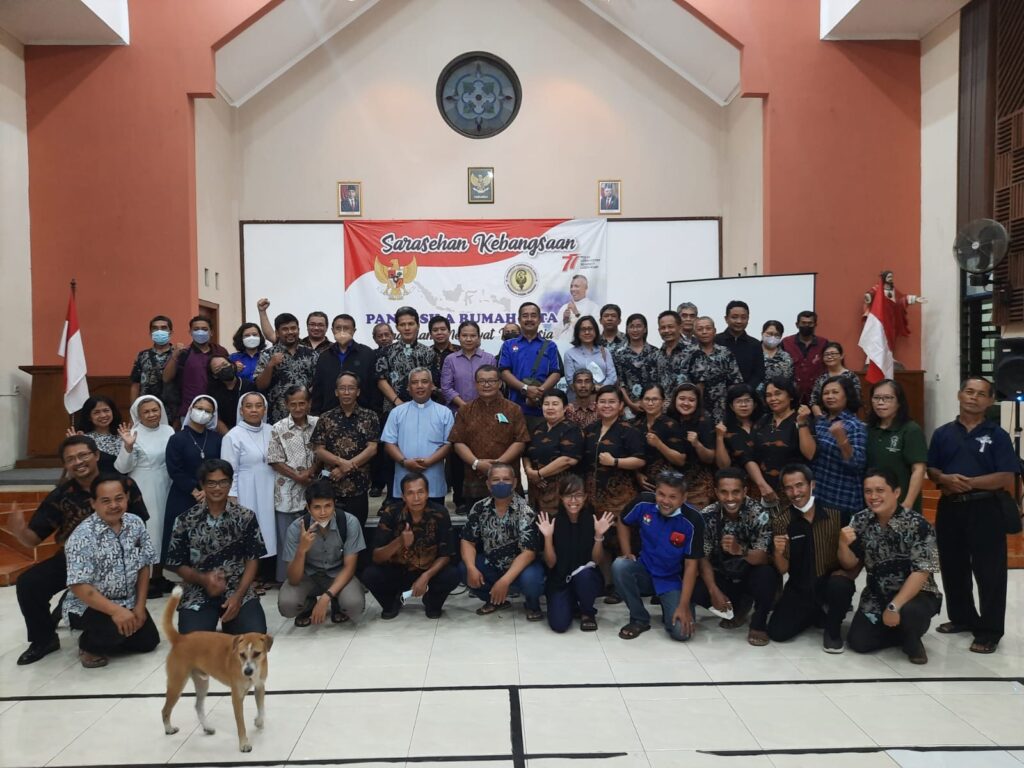 Dalam rangka menyambut HUT Kemerdekaan RI yang ke-77, Senin (15/8), Dewan Pastoral Paroki Sedayu menggelar Sarasehan Kebangsaan dengan tema: Pancasila Rumah Kita: Panggilan Merawat Indonesia. Hadir sebagai narasumber Rm AR Yudono Suwondo, Pr. Hadir pula tokoh masyarakat, Bapak Timbul Harjana, anggota DPRD kabupaten Bantul, Bapak Stephanus Heru Wismantara, kepala Kesbangpol kabupaten Bantul, pengurus FMKI, ketua-ketua […]