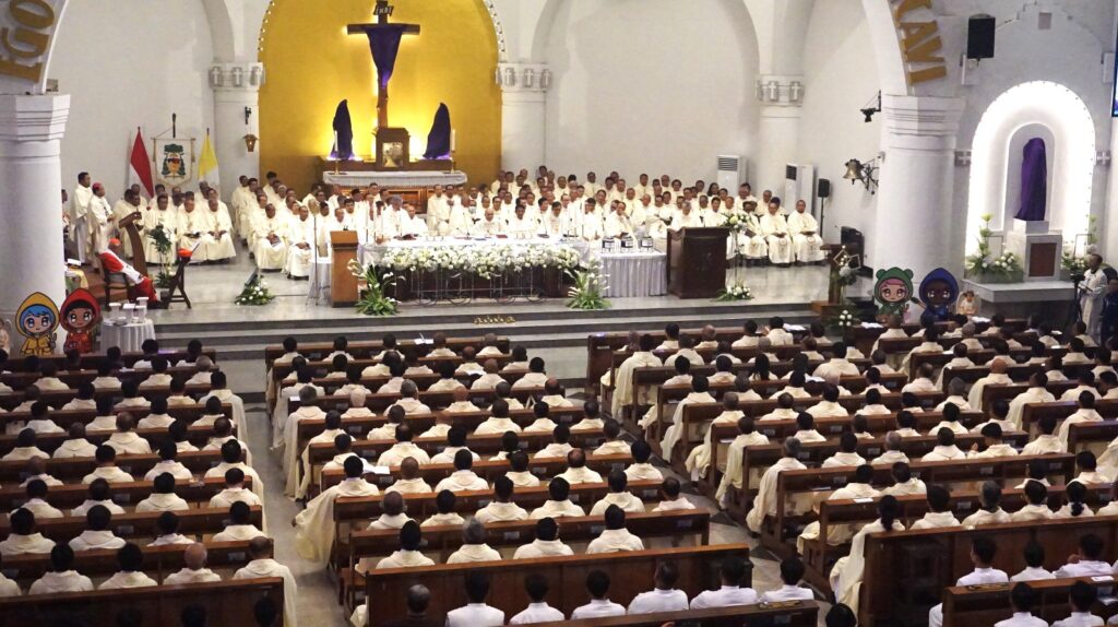 Jelang Tri Hari Suci, Ekaristi Pembaruan Janji Imamat (PJI) 2025 kembali dirayakan bersama Bapa Uskup Agung Keuskupan Agung Semarang, Mgr Robertus Rubiyatmoko di Gereja Santa Perawan Maria Ratu Rosario Suci, Randusari Katedral Semarang, pada Selasa (15/4/25).