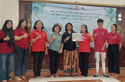 Sebagai wujud nyata komitmen dalam melaksanakan Tri Dharma Perguruan Tinggi, tim pengabdian masyarakat Politeknik Katolik (Polteka) Mangunwijaya menyelenggarakan kegiatan Pelatihan Keterampilan tentang Pembuatan Minyak Telon dan Sabun Cuci Tangan yang diikuti oleh Ibu-ibu Paroki Santo Petrus Sambiroto pada Minggu, 8 Juni 2025.
