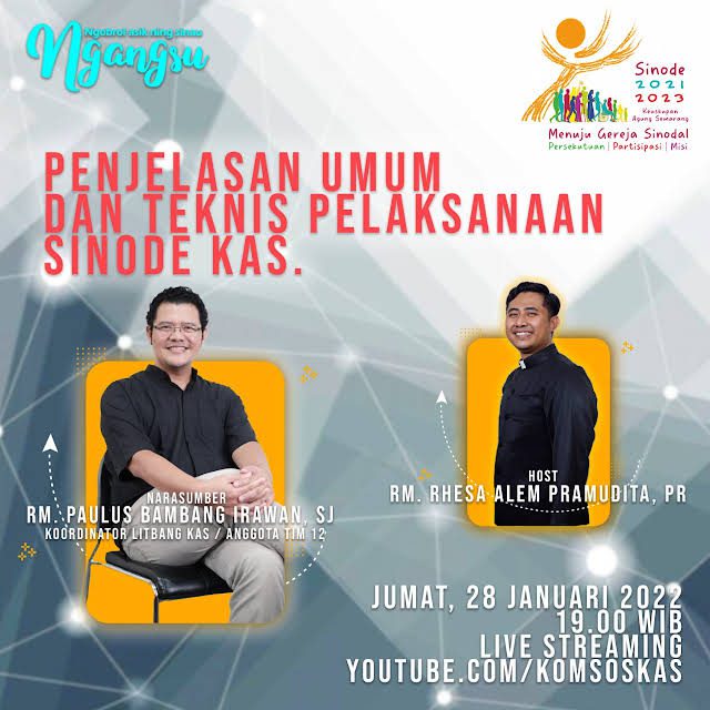 Saudari saudara terkasih umat Allah Keuskupan Agung Semarang, mari kita ikuti Ngobrol Asik Ning Sinau (NGANGSU) yang akan membahas tentang perjalanan SINODE di KAS. Tema: Penjelasan Umum dan Teknis Pelaksanaan Sinode. Narasumber: Romo Paulus Bambang Irawan SJ (Tim Sinode) Host: Romo Kristoforus Rhesa Alem Pramudita Pr Jumat, 28 Januari 2022 Jam 19.00 WIB Pasang pengingat […]