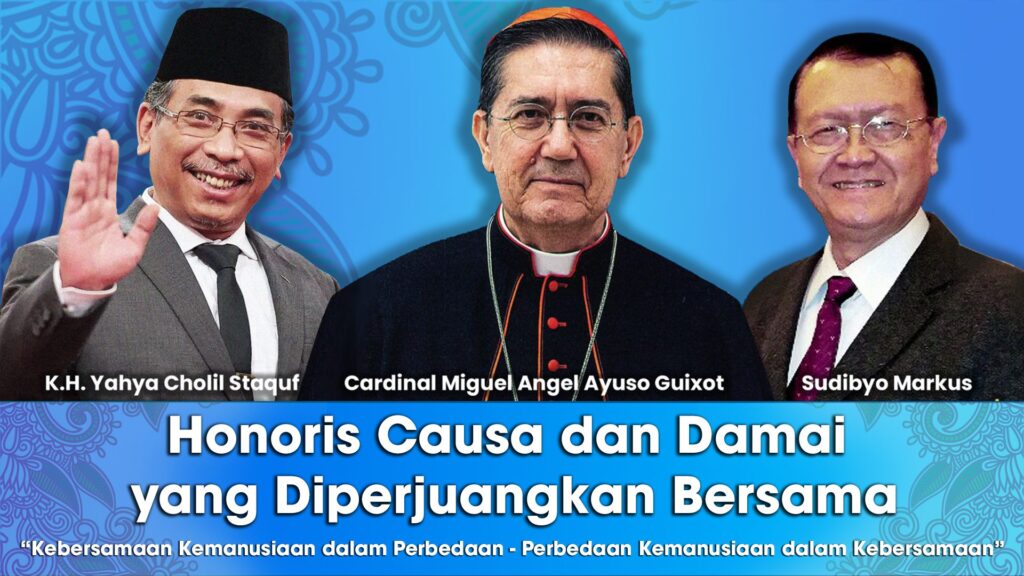 Pada 13 Februari 2023, Indonesia akan menjadi saksi penganugrahan Doktor Honoris Causa dari UIN Sunan Kalijaga kepada Kardinal Miguel Angel Ayuso Guixot, MCCJ, KH. Yahya Cholil Staquf, dan Sudibyo Markus.