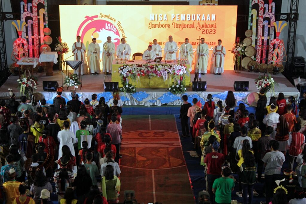 Mertoyudan, 4 Juli 2023 – Jambore Nasional SEKAMI 2023 resmi dibuka pada hari Selasa (4/7/2023). Bertempat di GOR Laudato Si Seminari Mertoyudan, Misa Pembukaan Jambore Nasional SEKAMI 2023 dirayakan secara inkulturasi.